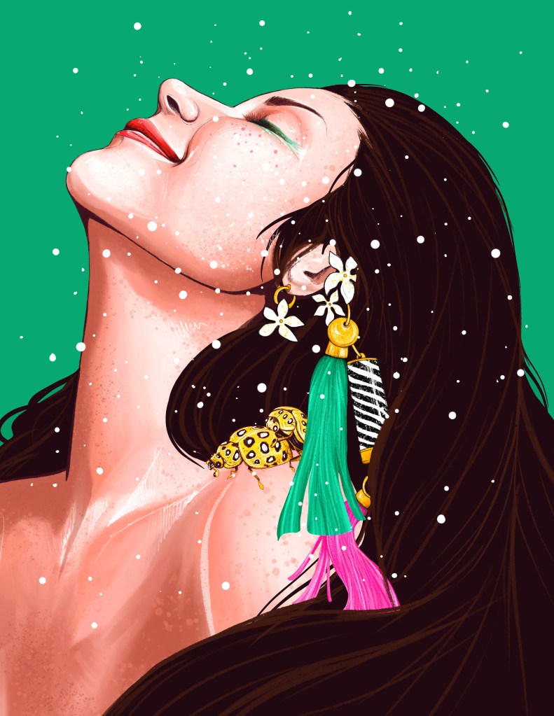 Sofia: I’m the type of artist that finds inspiration through happiness as opposed to suffering [laughs]. Some say artists have to be tortured to get good art out of them but for me it’s the opposite. I find inspiration through travelling but obviously we can’t now. So lately I find inspiration from Mexico and Mexican culture, and I really want to show its magic. I really like telling stories in my paintings so I do a lot of portraits. The human figure is really interesting to me and when I’m painting someone’s face, I think I discover more about the human spirit somehow. My work is also more figurative because I like to represent and understand the things around me by painting it. I also find inspiration in femininity. I like to think that being feminine doesn’t have to mean you’re delicate but on the contrary – it’s about embracing who you are and not having to hide it. It’s powerful to be feminine and the definition of that has expanded today and means so many different things.